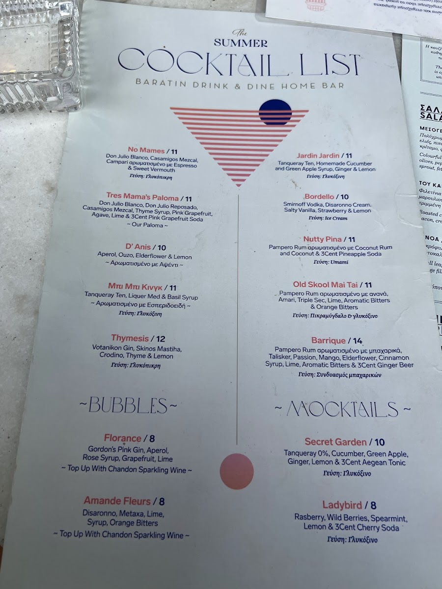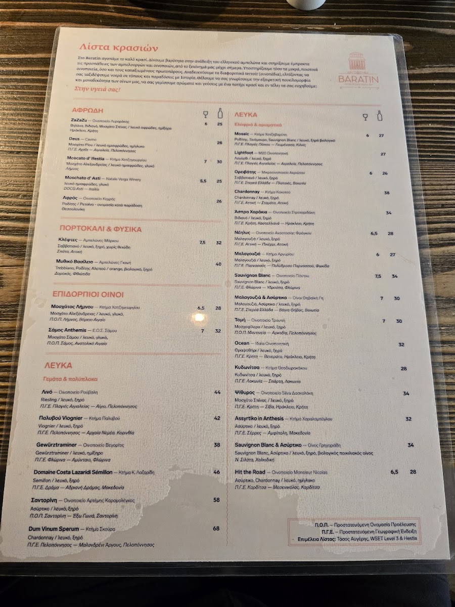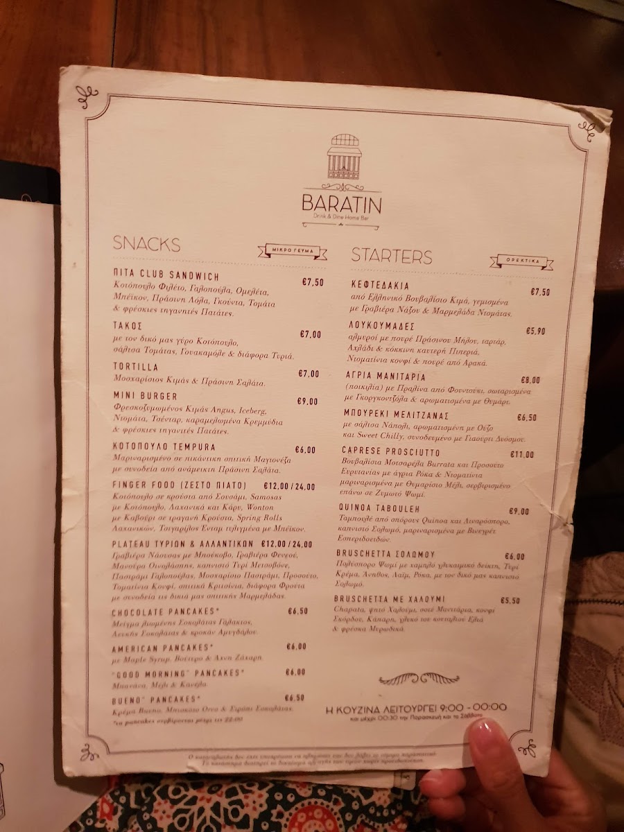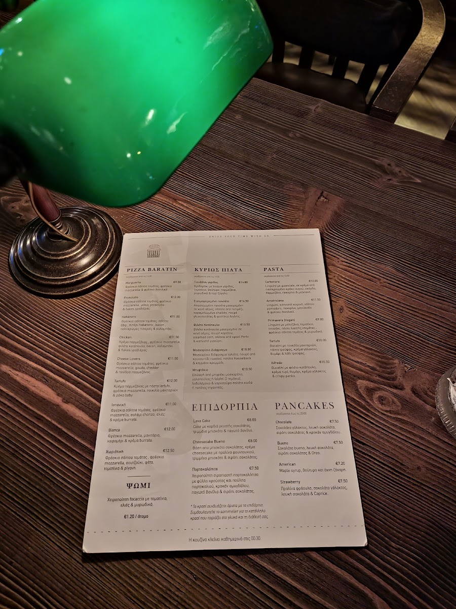 Baratin Menu